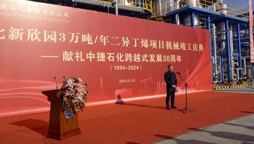 集团党委书记于国臣为庆典活动作讲话。于国臣指出,今天我们在这里举行3万吨/年二异丁烯项目机械竣工庆典,作为献礼PA直营官网 跨越式发展30周年的重要活动,对于集团公司来说有着特殊的重要意义。同时代表集团董事长向来到竣工庆典现场的伙伴们,向参建方项目代表及工人代表们表示热烈的欢迎,向长期以来关心、支持、帮助PA直营官网 事业发展的各级领导和各界人士表示诚挚的感谢。于国臣在讲话中回顾了PA直营官网 跨越式发展30周年的历程并为大家介绍了下属单位新欣园的公司情况。