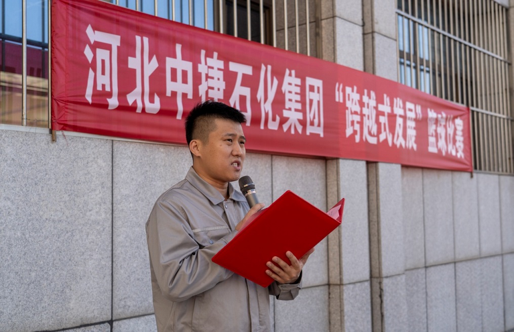 集团工会主席牛旭宗同志为“最佳团队风貌奖”队伍颁奖